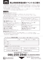 2014年 ●2016/12/31(土) 10:00~16:00 コミックマーケット91 東京ビッグサイト 3日目 西1ホール “の”-16a Studio 乃々 ●2016/11/19(土)・20(日)IVY Buzzurl アイビーバザール 会場:アイビー学館 (倉敷アイビースクエア内) 時間:9:00~17:00 県内外の様々なジャンルの作り手がアイビー学館にお店をだします。 今年は展示・販売の他にワークショップ、さらにアコースティックLIVEもあります。 作り手と共に霜月のひと時を楽しんでいただけたら幸いです。 ↓出展者一覧は下画像をクリック。 ![]() ↓画像クリックで美術家協会展のページへ ![]() ![]() ●2016/11/8(火)〜13(日) 第11 回 岡山県美術家協会展 会場:岡山県天神山文化プラザ 第3・4・5展示室 岡山市北区天神町8-54 時間:9:00~18:00(最終日は16:00まで) ※入場無料・販売なし 岡山県美術家協会は、美術のジャンルや会派、年齢を問わず、幅広い層の「美術家」たちが集う県内最大の美術団体です。私も所属しています。今回の協会展は 175名の協会員が出品します。 なんと今回の協会展、私実行委員を務めている上に、ワークショップも担当します。 <第11回 岡山県美術家協会展 イベントのご案内> ![]() ![]() ★協会展出品作家によるワークショップ ①11月12日(土) 9:50 ~ 12:00 「カリグラフィーのクリスマスカード」(定員8人) ・カリグラフィー ②11月12日(土) 13:20 ~ 15:30 「シルバーリーフのアクセサリー」 (定員10人) ・クレイシルバー ※下記<体験教室>をご参照ください。 ③11月13日(日) 9:50 ~ 12:00 「干支(えと)色紙「 酉」 を描く」 (定員10人) ・日本画 ④11月13日(日) 13:20 ~ 15:30 「秋の夕日を描こう」 (定員10人) ・色えんぴつ・パステル ★協会展出品作家によるギャラリートーク 11月12日(土)・13日(日)13:00 ~(約2時間)の計2回 ☆各回定員100名 参加費無料(申し込み不要) ↓イベントの詳しい内容・お申込等はこちらから 第11回 岡山県美 術家協会展 イベントのご案内 ●2016/9/21(水)〜10/2(日) うさぎ展2 -fly me to tha moon- 会場:カフェZ 岡山市南区浜野2-1-35 時間:11:00~19:00(最終日は18:00まで) ↓画像クリックで拡大 ![]() ![]() 十五夜と十三夜の間で、うさぎをモチーフにしたうさぎ展。 時代がうさぎを求めている?困難を飛び越えて、月まで私を連れってって。 様々なジャンルの作家によるうさぎだらけの作品展です。 うさぎ好きな方必見! ↓画像クリックで拡大 ![]() ●2016/9/7(水)〜12(月) 岡山ハンドクラフトフェスタ 会場:天満屋岡山店 7階催事場 岡山市北区表町2-1-1 時間:10:00~18:00(最終日は17:00まで) 天満屋岡山店の7階催事場にて、アクセサリー・木工から本格キルトまで岡山のハンドクラフト作家によるハンドメイド作品の展示販売イベントです。 6日間全日店頭におります。岡山での手持ち作品フル展示販売はなかなかないので是非! ●2016/8/11(木)〜9/11(日) 猫の祭典2016 Studio 乃々展示場所:服部時計店 岡山市北区表町1-4-60 表町商店街 時間:10:00~19:00 火曜定休日 ![]() 岡山発★岡山市内の複数個所が会場になり、様々なジャンルの作家が「猫」を使って表現したアートプロジェクトです 音楽祭、ワークショップ、スタンプラリーなど、今年もイベントも盛りだくさん! Studio 乃々の展示場所は表町商店街にある服部時計店さん。 私の他に、シルバーの佐藤奈穂子(さじ)さん、ガラス作家の有松啓介さんも展示しています。 ころんとかわいい新作にゃんこがおりますよ。 猫の祭典2016の詳しい情報はこちら スタンプラリーの容姿にもなっているパンフレットは、 掲載の参加店舗さんに置いてあります。 ↓パンフレット表面 画像クリックで拡大 ![]() ![]() ↑パンフレット裏面 画像クリックで拡大 ●2016/8/21(日) arteVarie 23(S.C.CITY 関西22) 会場:インテックス大阪 時間:10:30〜 15:00 スペースNo.:3号館 F-34 夏コミ直後の大阪のイベントです。 こちらも大阪初出しの作品もあります。 関西方面の方、ぜひ! ●2016/8/17(水)〜21(日) つくし展3 会場:カフェZ 岡山市南区浜野2-1- 35 時間:11:00~19:00(最終日は18:00まで) ↓画像クリックで拡大 ![]() 画家の田中MANさんの愛犬にし