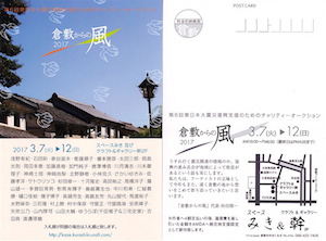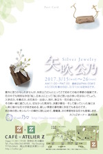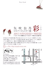 (火)〜23(日)岡山県美術家協会 津山展 会場:津山市立文化展示ホール (アルネ津山4F) 津山市新魚町17 時間:10:00~18:00 (最終日は16:00まで) ※入場無料・販売なし 岡山県美術家協会は、美術のジャンルや会派、年齢を問わず、幅広い層の「美術家」たちが集う県内最大の美術団体です。私も所属しています。今回は昨年11 月に天神山文化プラザであった美術家協会展の津山巡回展となります。約100点の力作の展示です。 ↓画像クリックで詳細ページ ![]() ![]() ●2017/3/15(水)〜26(日) 矢吹公乃 シルバージュエリー作品展 会場:カフェZ 岡山市南区浜野2-1-35 時間:11:00~19:00(最終日は18:00まで) ※3/20(月・祝)・21(火)は定休日 カフェZで8回目の個展です。 意外や意外、カフェZでジャスト桜の時期の展示は今回が初めて。 「桜」の作品をベースに、春に咲きほこる花々に満ち満ちた、 まさに「はるらんまん」の作品展になります。 新作だけでなく1年を通じての定番作品も。 もちろん販売もいたしますのでお楽しみに! 全日在廊しております。 ↓画像クリックで拡大 ![]() ●2017/3/7(火)〜12(日) 倉敷からの風 2017 会場:スペースみき&ギャラリー幹 岡山県倉敷市中央1-6-8 時間:10:00~18:00(最終日は16:00まで) ※会期中休廊日無し 東日本大震災復興支援の為に立ち上げたチャリティオークション展「倉敷からの風」に昨年に引き続き今年も参加いたします。約50名の作家陣が出展する見応 えもたっぷりなシークレットオークション形式のイベントとなっております。逸品を見つけにぜひお越しください。 私はピアス・ペンダントを計4点出品しております。オークション、上手くいけばちょっとお得価格で手に入るかも?? 寄付金は作者へ4割支払いの後、通信費を差し引いた金額を「特定非営利活動法人アムダ(AMDA)」へ被災地支援限定として寄付いたします ●2017/1/8(日) 10:30ー 15:00 arteVarie 27(C.CITY 大阪109) インテックス大阪 3号館 C-28 Studio 乃々
